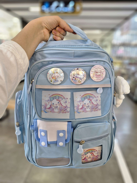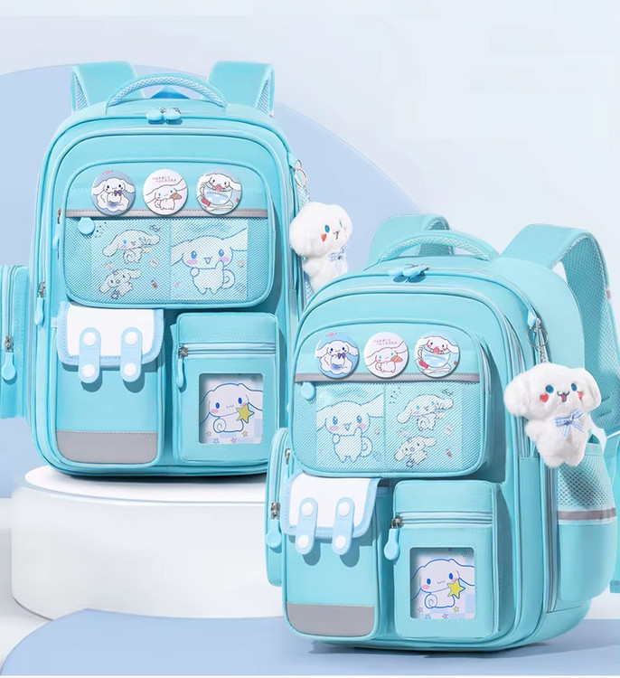کوله پشتی مدرسه مدل تانکی طرح ملودی،کرومی و سینامورول پیکسل دار + آویز