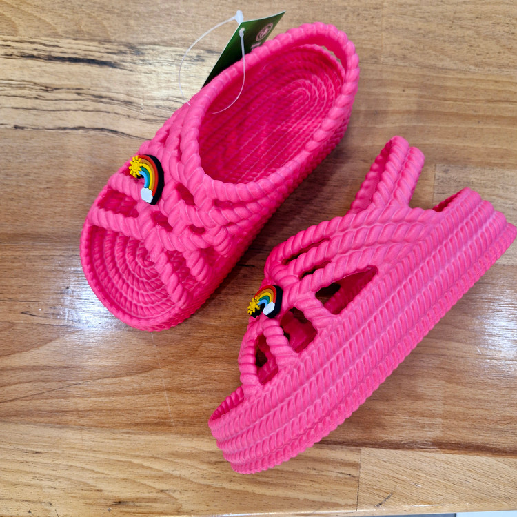 کفش ساحلی دخترانه پاپا مدل کارن از متریال EVA تولید شده است لذا دارای وزن سبک و زیره ای نرم و راحت است. این کفش ساحلی برای استفاده در محیط های ساحلی و استخری و تفریحی آبی بسیار مناسب است. این دمپایی ساحلی به صورت یک تکه و یکپارچه تزریق و تولید شده است لذا بسیار با دوام است. یکی از ویژگی های بارز این کفش ساحلی لژ بلند آن که حدود 5 سانتیمتر است میباشد. با پوشیدن این کفش ساحلی جلوه بلندتری از قامت شما به نمایش گذاشته میشود. وزن سبک از دیگر مشخصه های این کفش ساحلی است. سایز بندی این کفش ساحلی استاندارد بوده و میتوانید مطابق با سایز کفش شهری خود نسبت به انتخاب سایز مناسب اقدام نمائید.